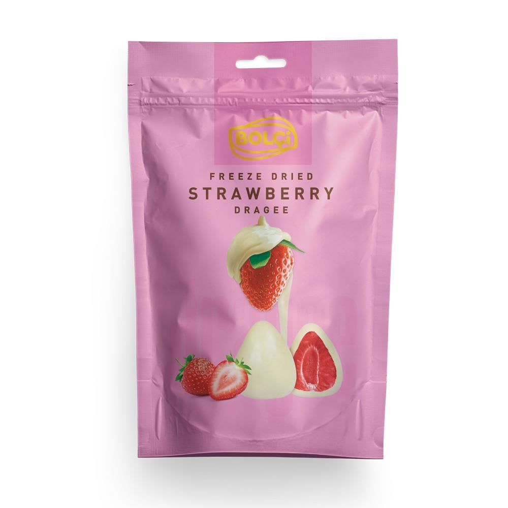 İçindekiler: eker, Kakao Yağı, Yağlı Süt Tozu (%10), Dondurularak Kurutulmuş Çilek, Peynir Altı Suyu Tozu (%6), Yağsız Süt Tozu (%3,5), Bitkisel Yağ (Palm, Shea), Ayçiçek Yağı, Emülgatör (Ayçiçek Lesitini), Parlatıcı (Gum Arabic), Doğal Aroma Verici (Vanilya). Eser Miktarda Sert Kabuklu Meyveler, Susam, Yumurta Ürünleri, Soya Ürünleri, Yer Fıstık ve Gluten içerebilir.